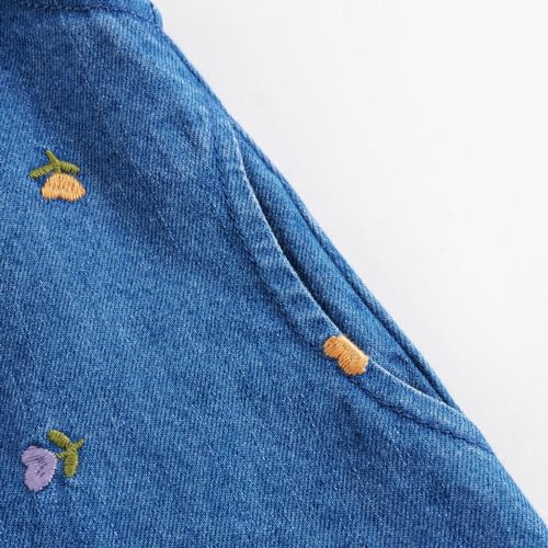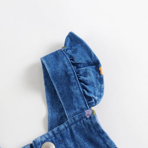 • Features:A Delightful Blend of Style and Comfort! This pure cotton denim dress features charming ruffle shoulder straps and intricate floral embroidery. With a comfortable and durable pure cotton denim fabric, it's a perfect choice for a stylish and cozy outfit