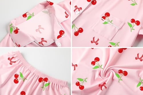 Umeyda Girls & Women Pajamas Set Soft Short Sleeve Sleepwear Button-Down Pjs Set Family Pajamas Nightwear Loungewear 5