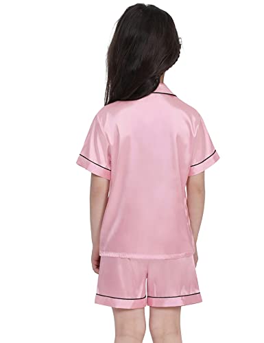 SWOMOG Kids Satin Pajamas Sets Girls Boys Button-Down Pjs Short Sleeve Silk Nightwear 2 Piece Lounge Sets 5