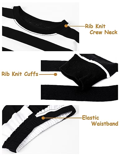 • [Kids Gift] This boys pajamas set is made of classic black and white striped fabric, suitable for children's daily wear and can also be used as holiday pajamas set such as Christmas, Halloween, anime expo, birthday and other days.