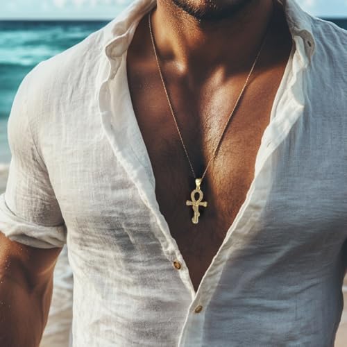HOT ! JINAO Ankh Cross Necklace for Men 14K Gold Plated - Snake Coiled Egyptian Symbol Cross Pendant with 5A Cubic Zirconia, 24" Rope Chain Men’s Jewelry