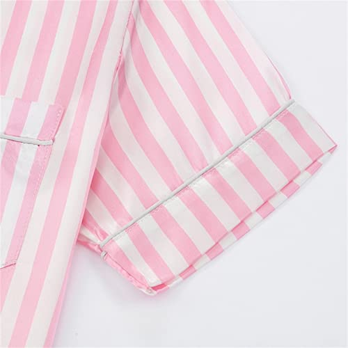Girls Boys Silk 𝗣ajamas Set Summer Short Sleeve Satin 𝗣js 2PC Kids Toddler Baby Stripe Button Down Sl𝐞epwear 𝗟oungewear 5
