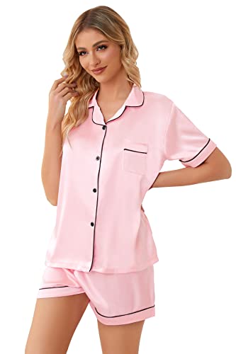 HOT ! Schbbbta Satin Pajamas for Girls, 2 Pcs Sleepwear Short Sleeve Silk Satin Summer Pajama Set for Girls, Candy Pink, 4-5 Years = Tag 10