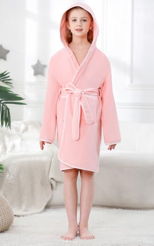 Umeyda Kids Towel Hooded Robe, Boys Girls Soft Terry Cloth Cotton Bathrobe Sleepwear, Pink, 2-4 Years = Tag 100 5