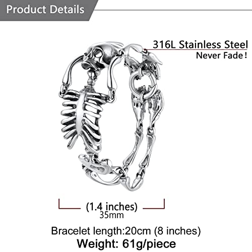 • Punk Gothic Jewelry: Cool skull skeleton link design, cool personalized wrist bracelet.