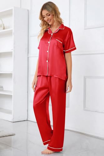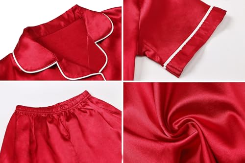 Umeyda Girls Pajamas, Satin Pjs Silk Sleepwear Comfy Family Matching 2Pcs Lightweight Loungewear Gift for Teen Kids, Red, 10-11 Years = Tag 150 7