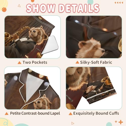 More information about Satin Pajama Sets Short Sleeve Animals Playing Music on Stage Button Down Silky Nightwear 2 Piece PJS 5-14Y