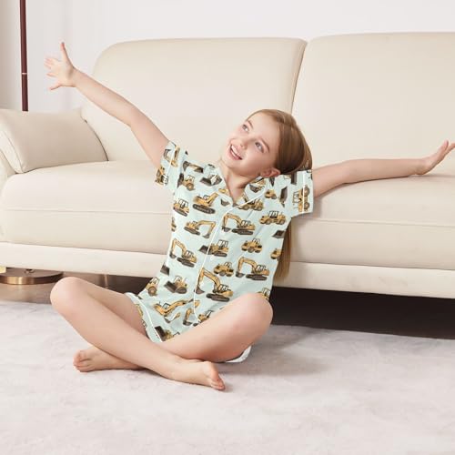 Excavator Tractor Bulldozer Print Summer Pajamas Set Soft Satin Pjs Sets 2 Piece Short Sleeve Sleepwear Casual Clothes 1