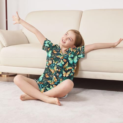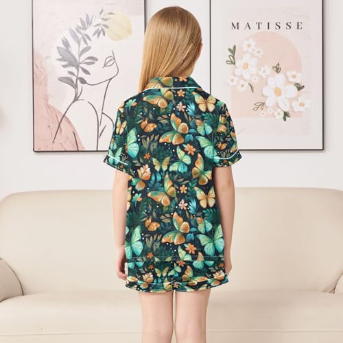 senya Green Butterflies Satin Summer Pajama Sets Silk Short Sleeve Button Down Sleepwear 1
