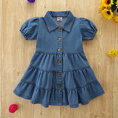 Girl Frocks Toddler Girls Summer Short Sleeve Turndown Neck Frilly Denim Dress Princess Skirt Long Light Dress Girls 3