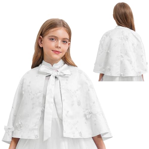 renvena Girls Embroidery Shawl Wrap Wedding Flower Dress Cover Up Mesh Shrug Cape Shawl Wraps 5