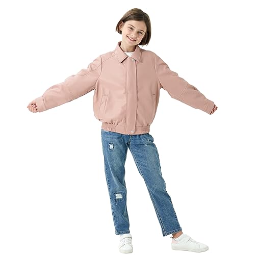 Rolanko Girls Faux Leather Jacket Kids Zip Up Motorcycle Biker Outerwear Coat Pleather Bomber Jacket with Pockets 5-15 Years 4