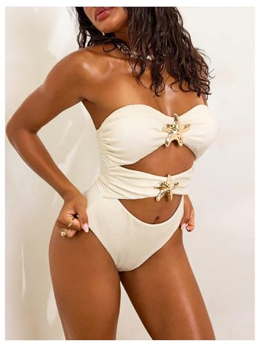 MakeMeChic Women's One Piece Swimsuit Starfish Cut Out Bandeau Bathing Suit Swimwear 1