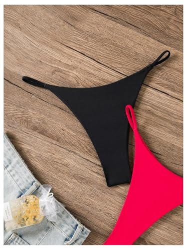 SweatyRocks Women's 2 Pack High Cut Thong Bikini Bottoms Cheeky Swimsuit Bathing Suit Bottoms Swimwear 2