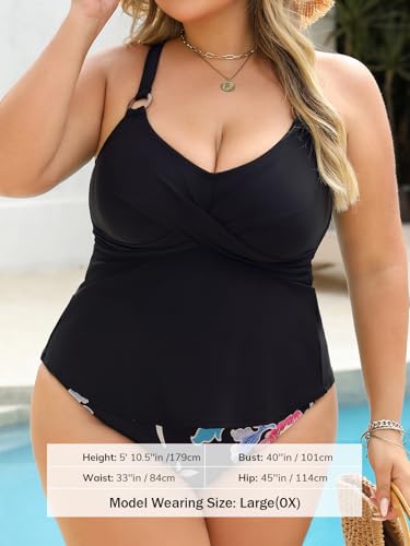 • Design: Elevate Your Poolside Look with Our Plus Size Tankini Sets, featuring a V Neck and O Ring Detail. The Crisscross Back Tie Adds a Decorative Touch, while Mid Rise Bottoms and Adjustable Straps Offer a Flattering Fit. Cup: Removable Soft Cups.