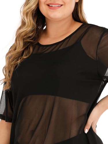 Women's Plus Size Sheer Mesh Beach Dress Cover Up See Through Short Sleeve Beachwear 3