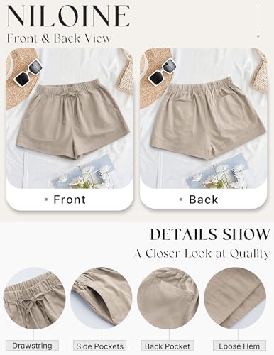 Summer Drawstring Shorts for Women 2025 Casual Elastic Waist Lightweight Beach Shorts Lounge Short Pants Pockets(1-Khaki,XX-Large) 3