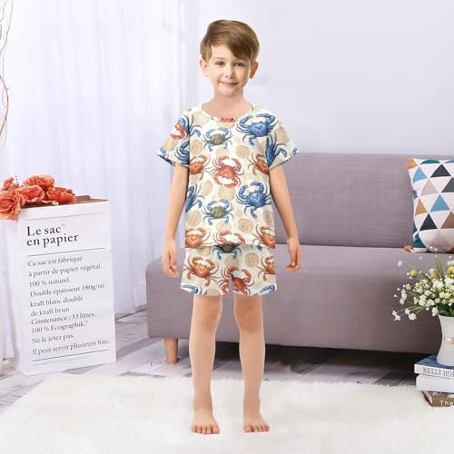 Pajama Short Sets Marine Life Colorful Crabs Soft Cotton Summer Sleepwear 2 Piece PJS Size 5-14T 1