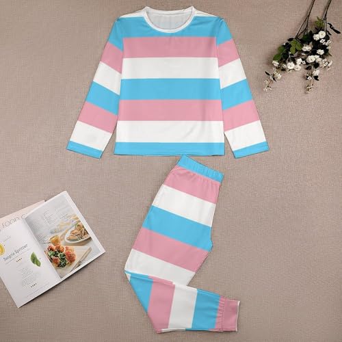 Transgender FlagChildren's Pajama Set Round Neck Long Sleeve Top + Pants Two-piece Set120CM 1