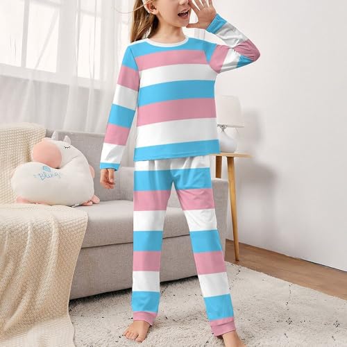 Transgender FlagChildren's Pajama Set Round Neck Long Sleeve Top + Pants Two-piece Set120CM 3