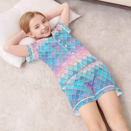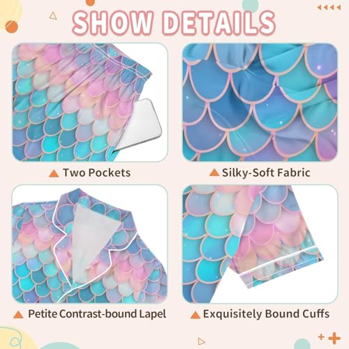 ALAZA Mermaid Fish Scales Lovely Satin Pajamas Set Short Sleeve Button Down Sleepwear Summer Pjs 2 Piece 6