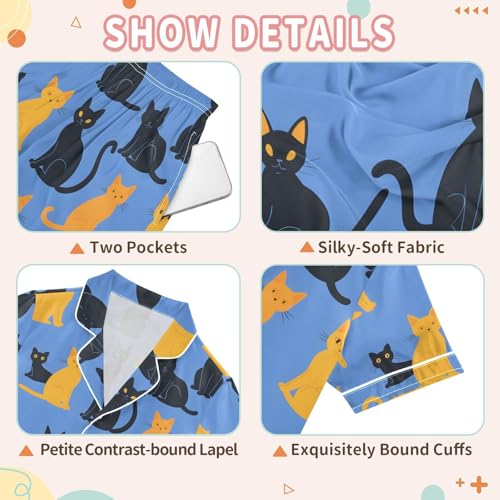 ALAZA Blue Yellow Cat Kitten Pajamas Satin Pajama Set Short Sleeve Button Down Sleepwear 4