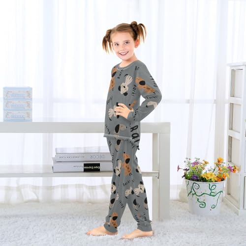 Long Sleeve Pajama Set for Girls Boys Kids,Little Dogs Grey Brown Comfy Nightwear Soft Loungewear,Family Matching PJs Underwear Set 6T 1