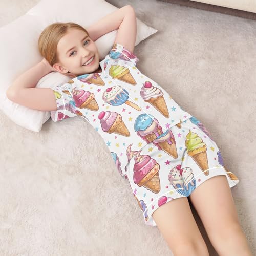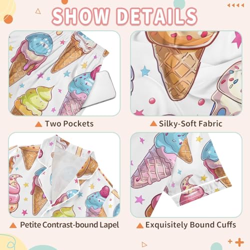 ALAZA Summer Ice Cream Star Dot Pajamas Satin Pajama Set Short Sleeve Button Down Sleepwear 6