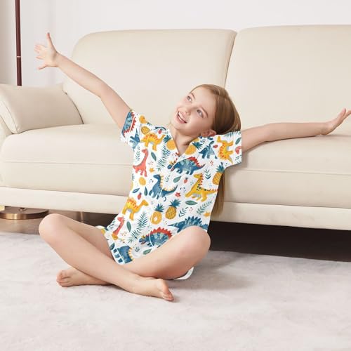 ALAZA Dinosaur Pineapple Strawberry Leaf Pajamas Satin Pajama Set Short Sleeve Button Down Sleepwear 2
