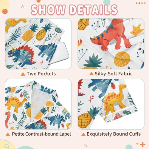 ALAZA Dinosaur Pineapple Strawberry Leaf Pajamas Satin Pajama Set Short Sleeve Button Down Sleepwear 4