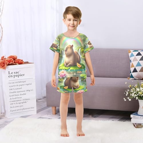 Capybara Rainbow Pajama Set Short Sleeve Pajamas Shorts Sets Cotton PJS 2 Piece Clothes Set 5Y 5