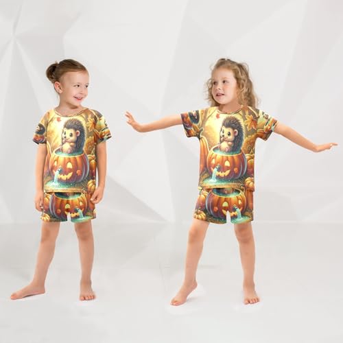 Fall Hedgehog Pumpkins Pajama Set Short Sleeve PJS 2 Piece Summer Pajamas Shorts Sets Cotton 5Y 4