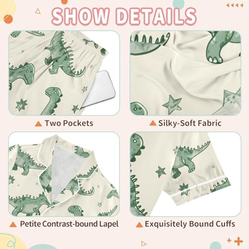 ALAZA Cute Dinosaur Animal Green Pajamas Satin Pajama Set Short Sleeve Button Down Sleepwear 6