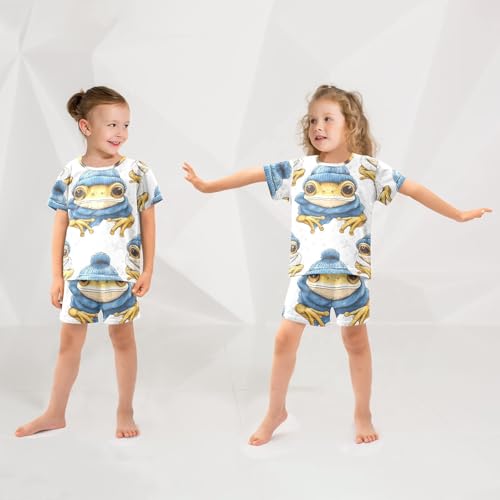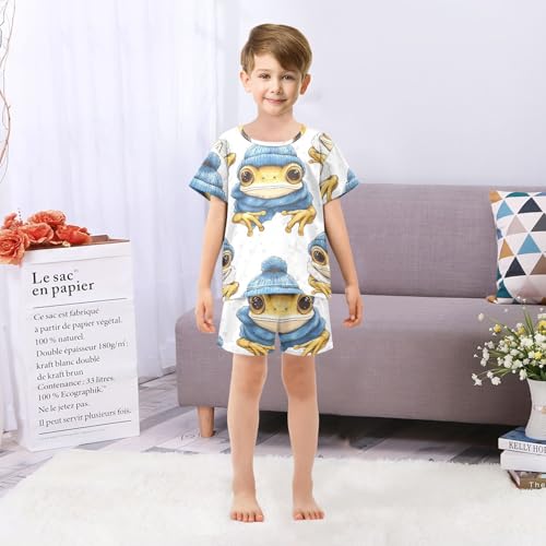 Pajama Short Sets Frog Wearing Winter Blue Hat Soft Cotton Summer Sleepwear 2 Piece PJS Size 5-14T 6