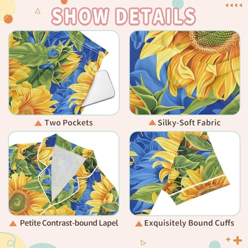 ALAZA Sunflower Blue Pajamas Satin Pajama Set Short Sleeve Button Down Sleepwear 4