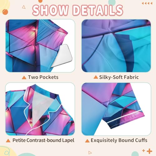 More information about Satin Pajama Sets Short Sleeve Blue and Pink Abstract Triangles Button Down Silky Nightwear 2 Piece PJS 5-14Y