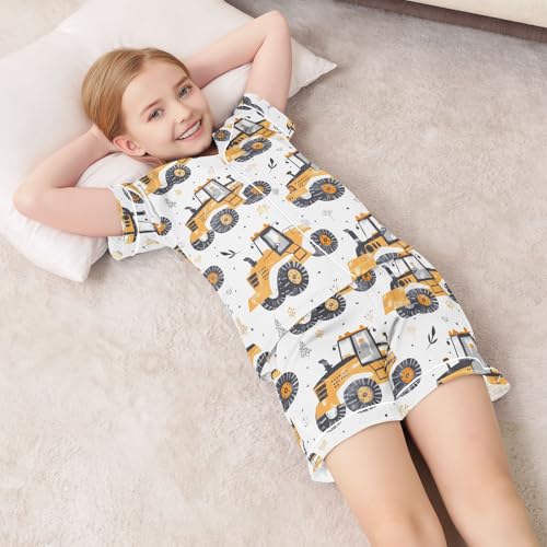 ALAZA Yellow Truck Satin Pajamas Set Short Sleeve Button Down Sleepwear Summer Pjs 2 Piece 7