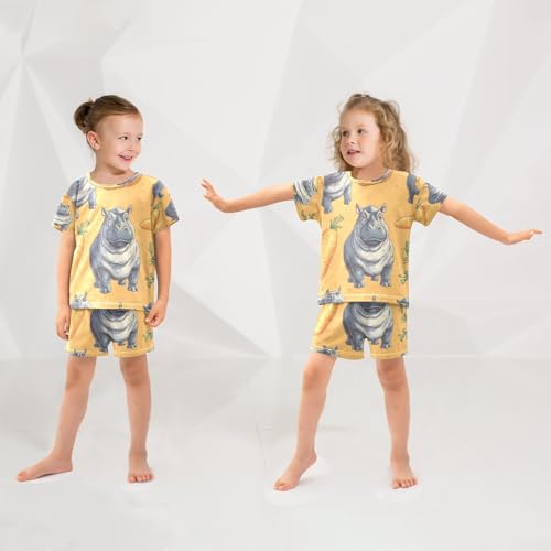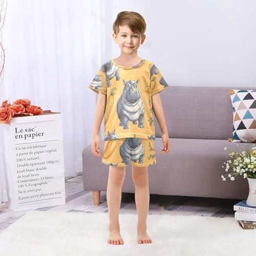 Pajama Sets Short Sleeve Hippo and Carrot Pattern Soft Cotton Summer Sleepwear 2 Piece PJS Size 5-14T 5