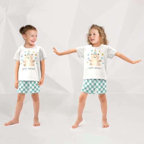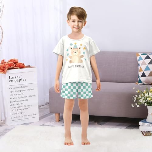 Checkerboard Plaid Bear Holding Stars Ivory Pajama Set Short Sleeve Summer Pajamas Shorts Sets PJ Clothes Set Soft 5Y 4