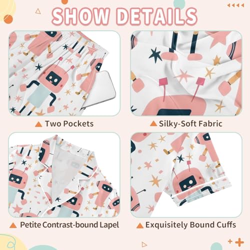 ALAZA Robot Star Pajamas Satin Pajama Set Short Sleeve Button Down Sleepwear 3