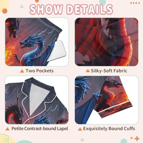 ALAZA Red Blue Dragon Satin Pajamas Set Short Sleeve Button Down Sleepwear Summer Pjs 2 Piece 2