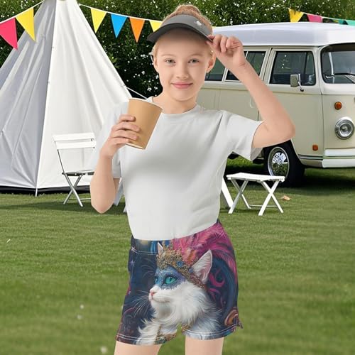 Girls Athletic Shorts Cute Cat Carnival Mask Pattern Active Summer Youth Shorts Kids Sleepwear Customizable, X-Small 5