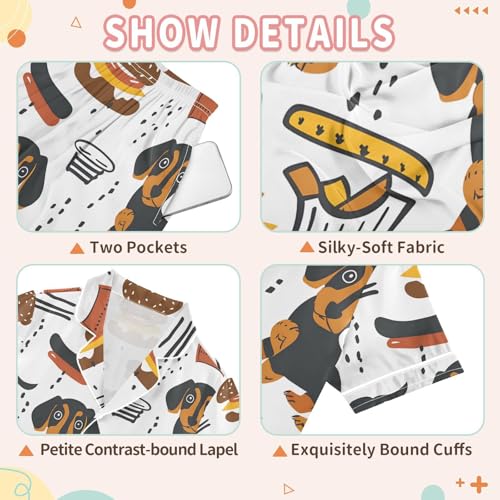 ALAZA Dachshund Dog French Fries Pajamas Satin Pajama Set Short Sleeve Button Down Sleepwear 7
