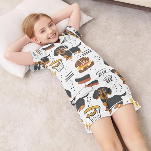 ALAZA Dachshund Dog French Fries Pajamas Satin Pajama Set Short Sleeve Button Down Sleepwear 5