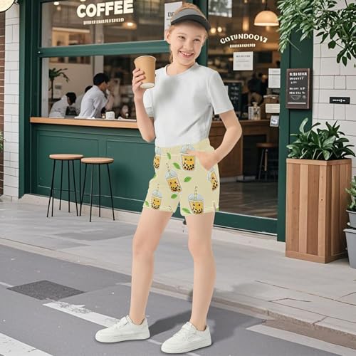 Girls Athletic Lounge Shorts Bubble Tea Animal Print Cute Comfy Summer Pajama Sleepwear Teen Kids Custom, X-Small 5