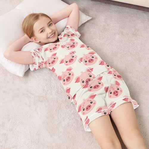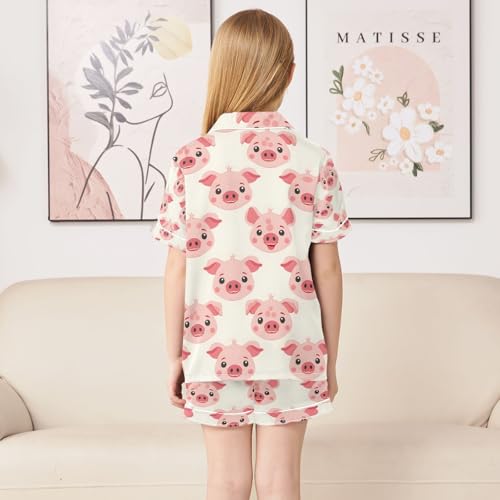 senya Cartoon Pig Face A Satin Summer Pajama Sets Silk Short Sleeve Button Down Sleepwear 6