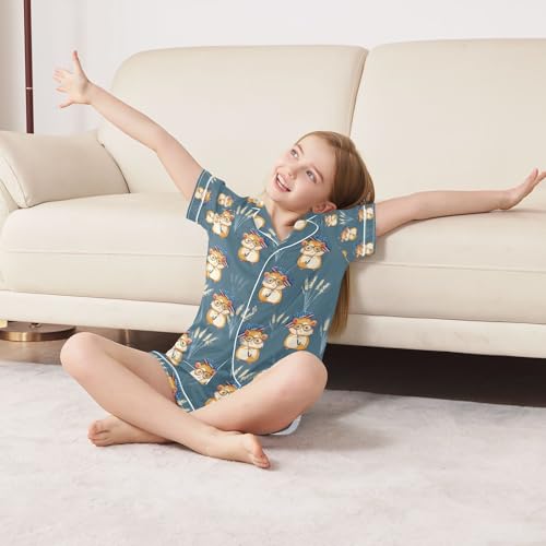 HOT ! senya The Usa Cute Hamster Satin Summer Pajama Sets Silk Short Sleeve Button Down Sleepwear