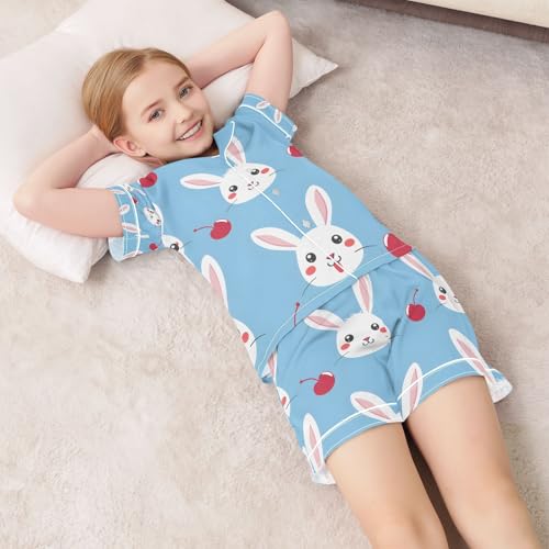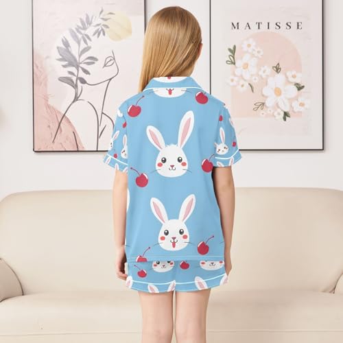 senya Rabbit Cherry Satin Summer Pajama Sets Silk Short Sleeve Button Down Sleepwear 2