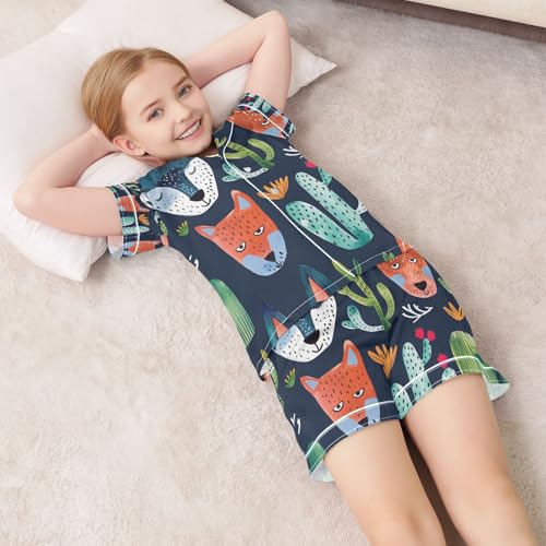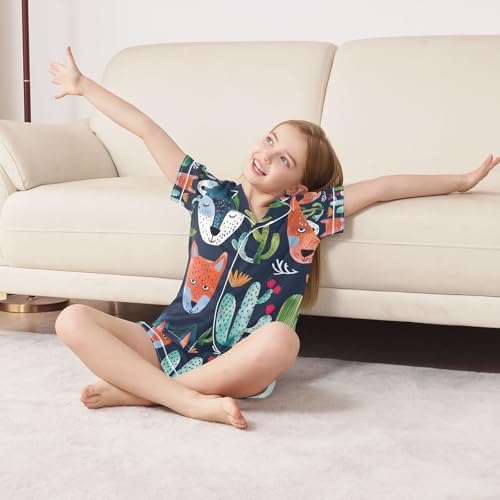 senya Foxs Face Cacti Satin Summer Pajama Sets Silk Short Sleeve Button Down Sleepwear 4