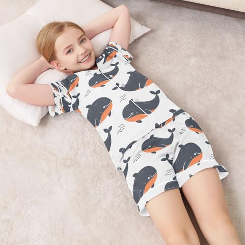 senya Cartoon Whale Orange Satin Summer Pajama Sets Silk Short Sleeve Button Down Sleepwear 1